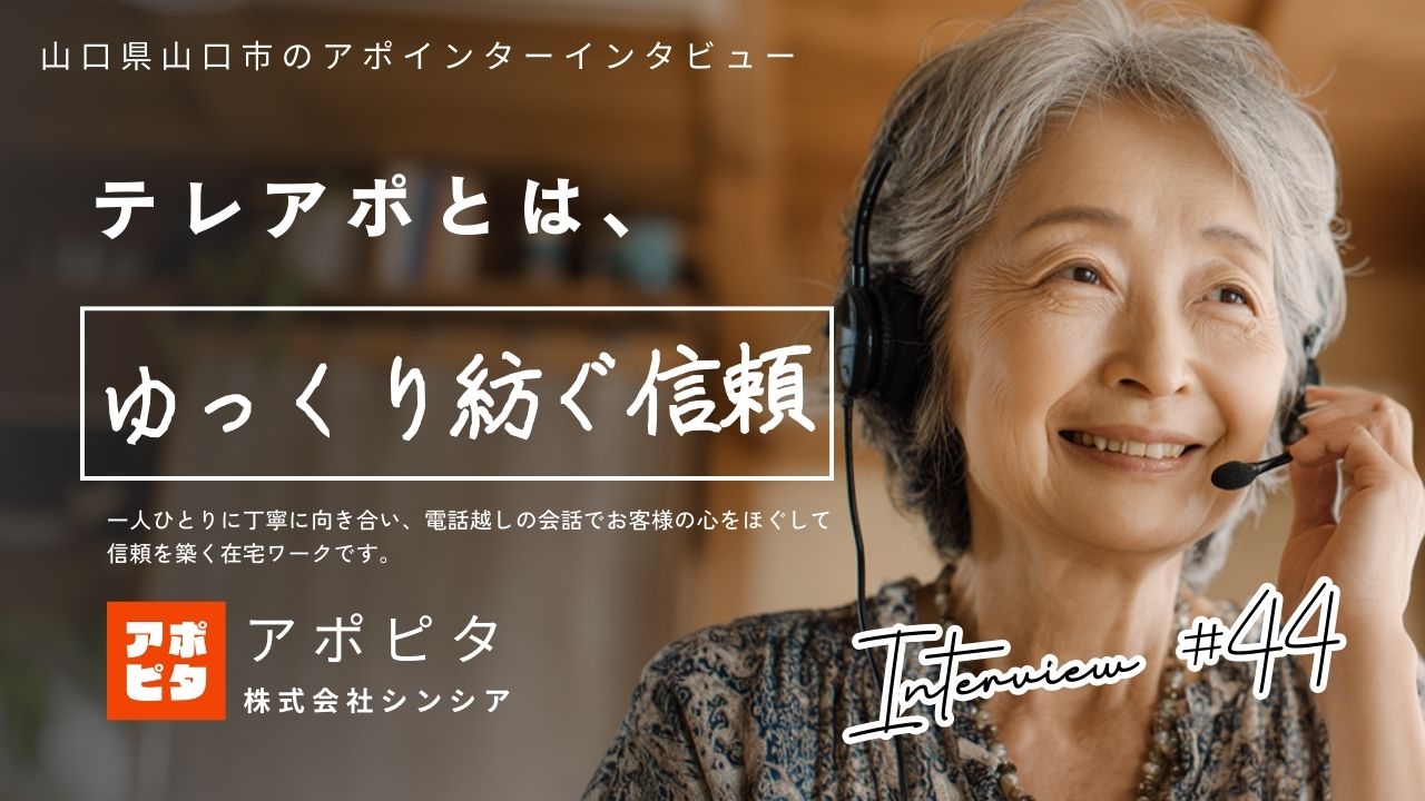 「山口市はゆっくり聞いてくださる方が多く、落ち着いたトーンで話すと反応が良いです。体調を崩して外での仕事が難しくなりましたが、在宅なら無理なく続けられ、毎週6〜9件のアポを取れるようになりました。」